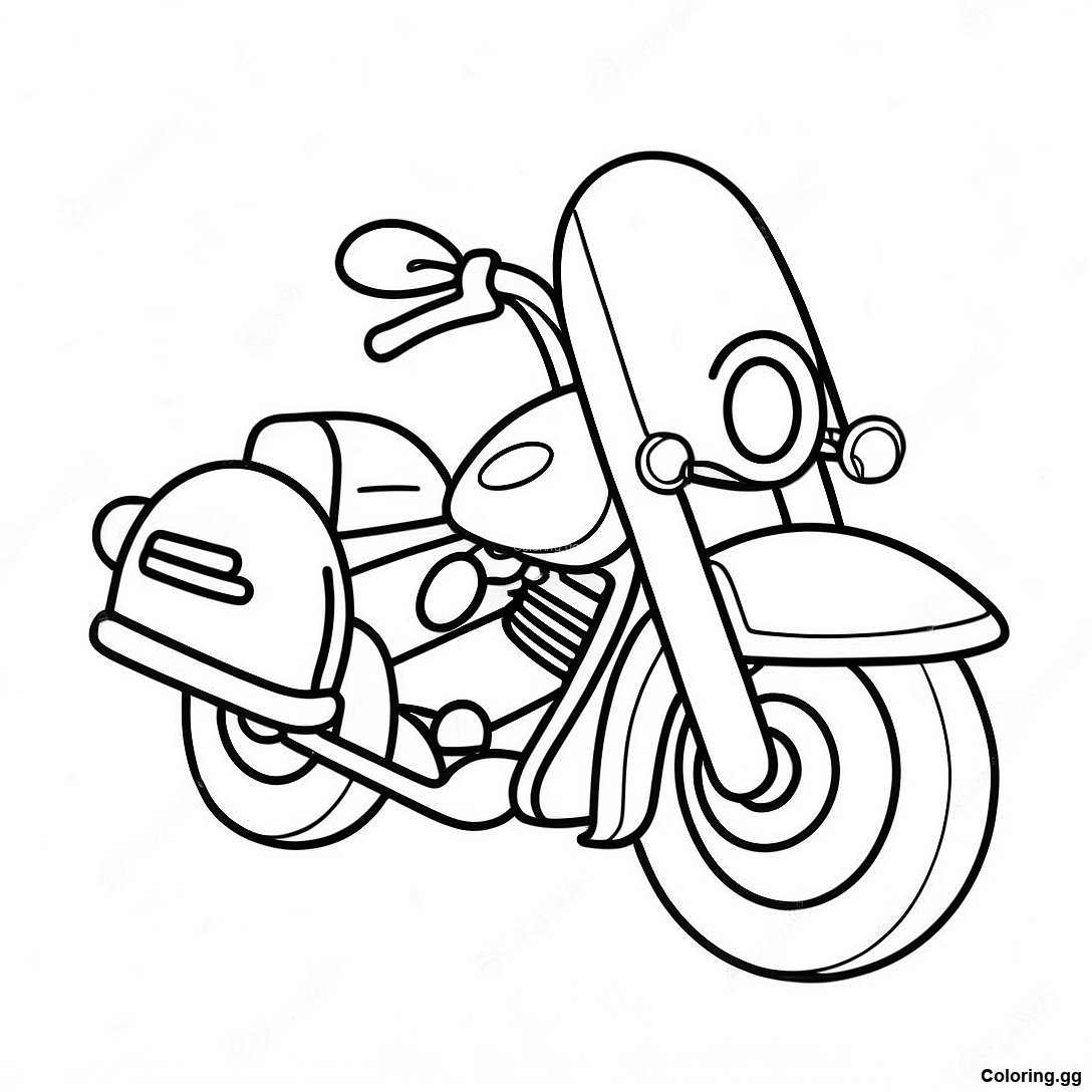 הורד PDF להדפסה של אופנוע מצויר חמוד בדף צביעה
