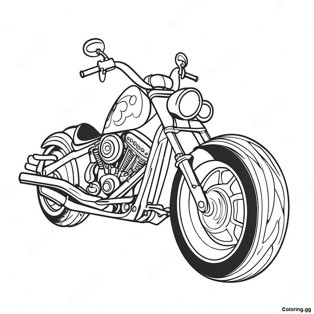 אופנוע צ'ופר עם להבות בדף צביעה