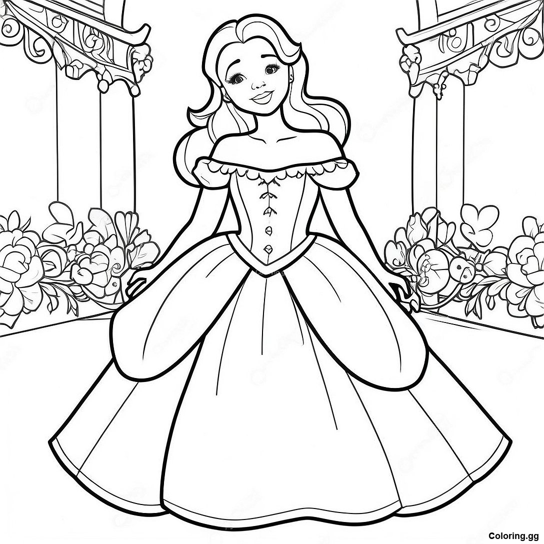 דף צביעה של הנסיכה יסמין בשמלה יפה