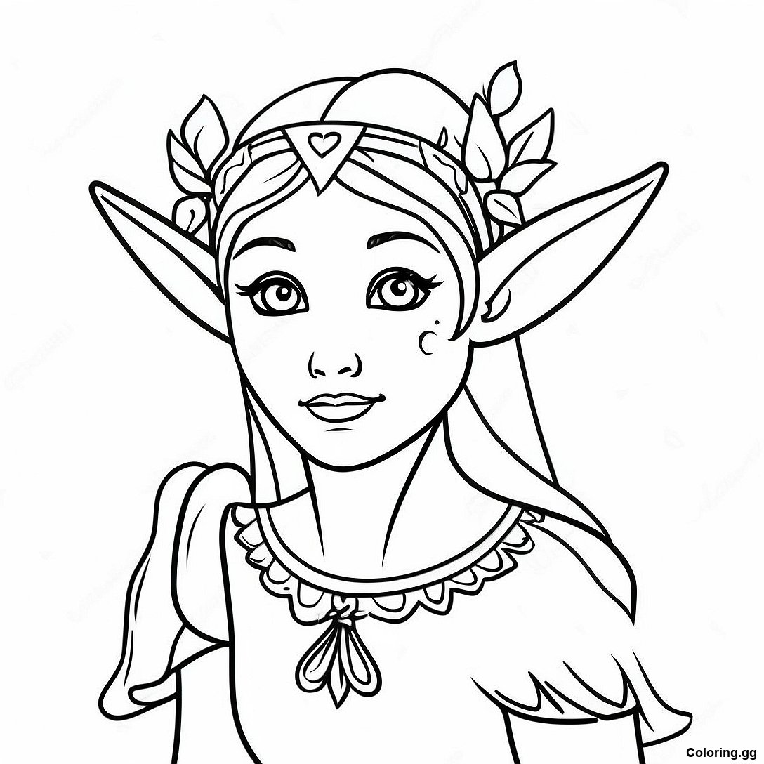 הורד PDF להדפסה של דף צביעה של אלף ריאליסטי אלגנטי עם פרחים