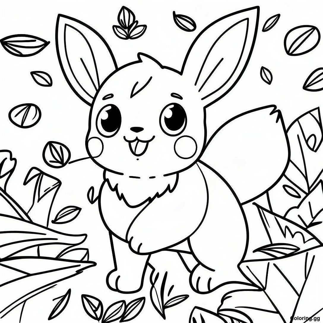 הורד PDF להדפסה של דף צביעה של איבי מוקף בעלים