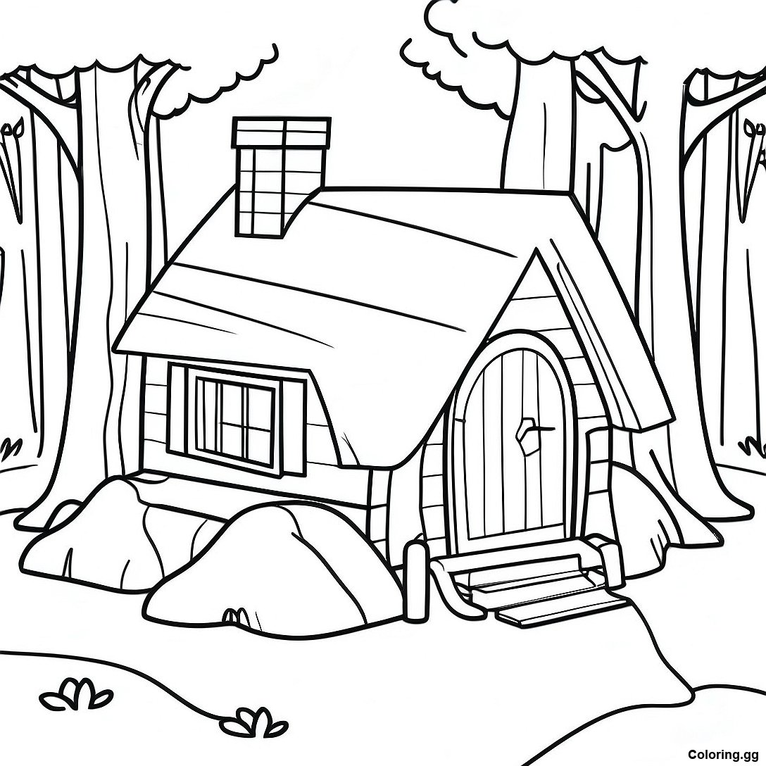 הורד PDF להדפסה של דף צביעה של בקתה קסומה ביער