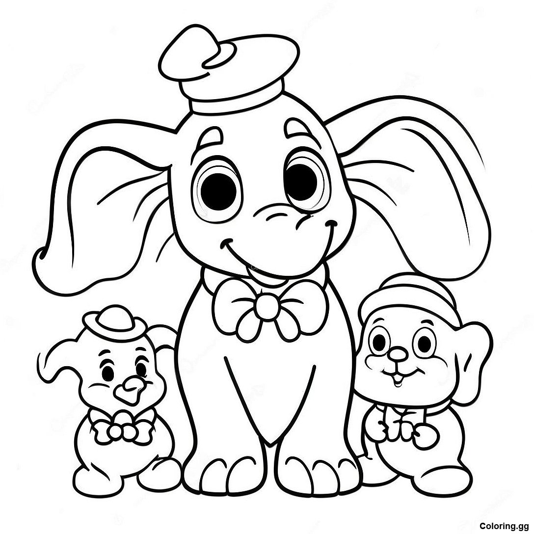 הורד PDF להדפסה של דף צביעה של דאמבו והליצנים