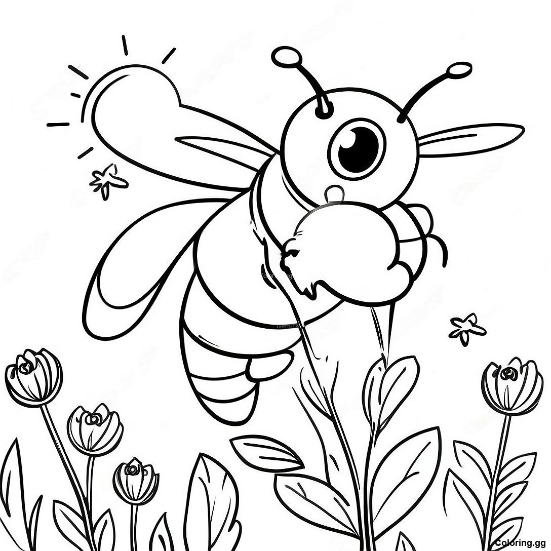 הורד PDF להדפסה של דף צביעה של דבורת דבש בגינה