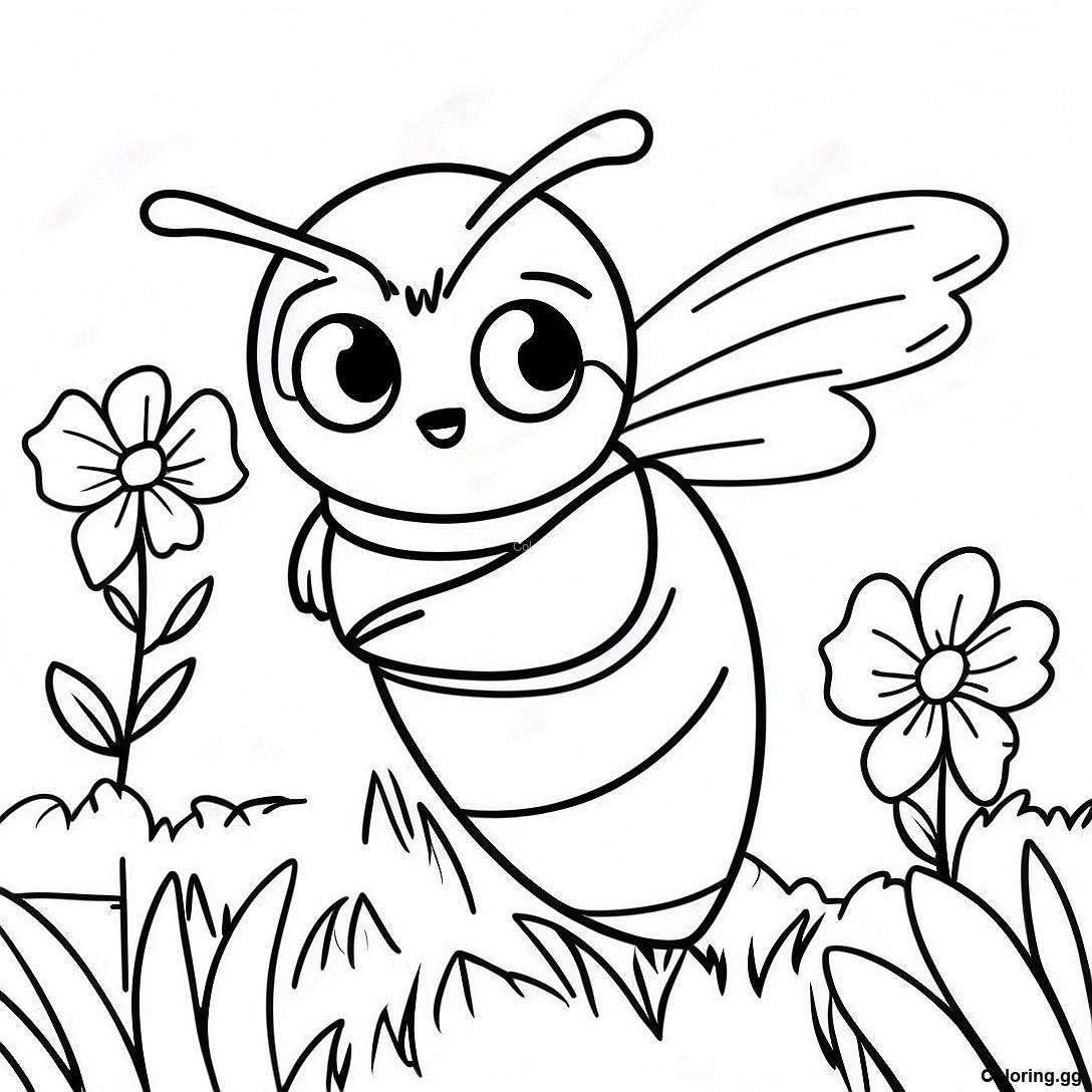 הורד PDF להדפסה של דף צביעה של דבורת דבש בגינה