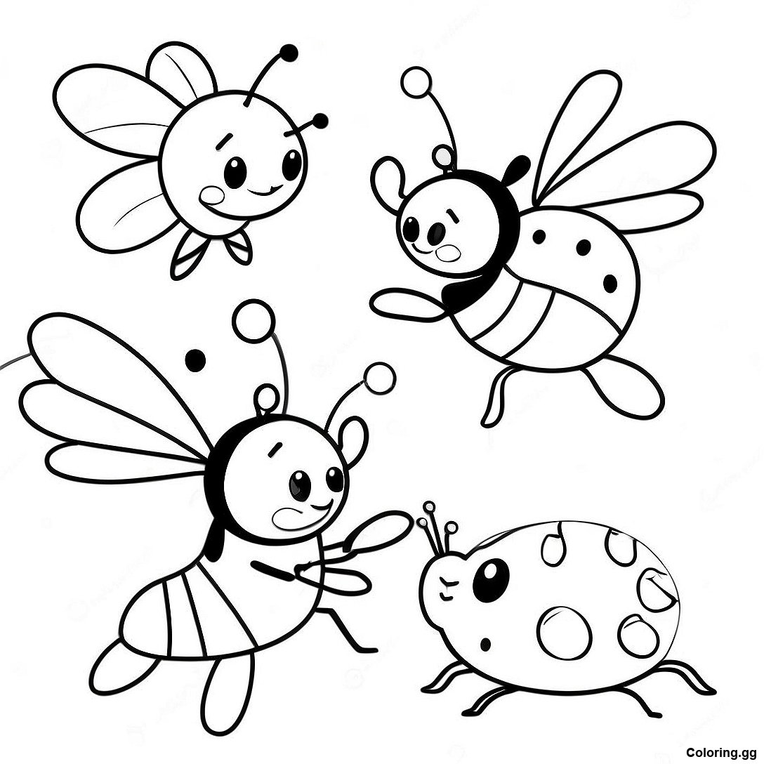 הורד PDF להדפסה של דף צביעה של דבורת דבש וחרצית חברות