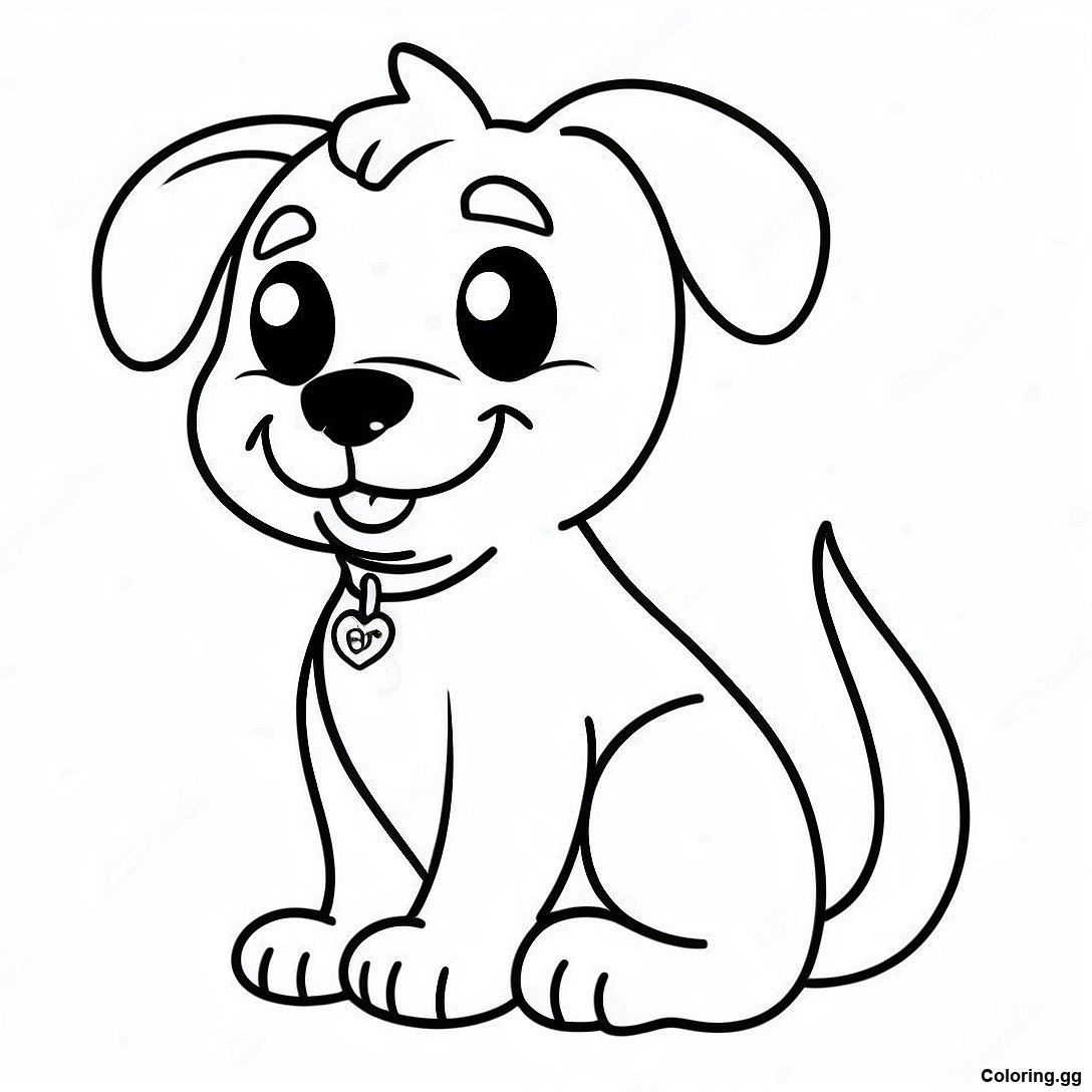 הורד PDF להדפסה של דף צביעה של גור כלבים שמח עם זנב מתנודד
