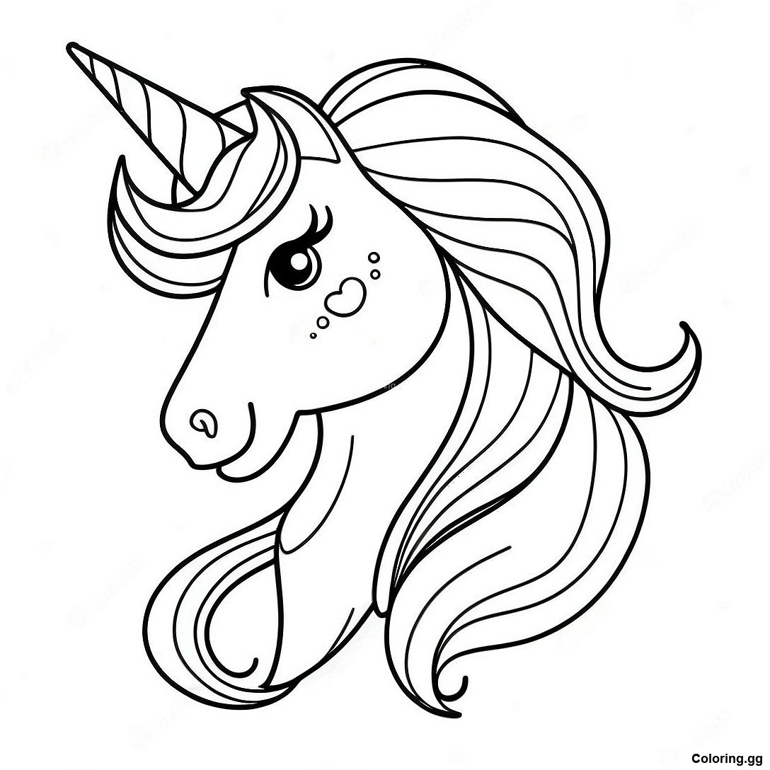 דף צביעה של חד קרן אלגנטי עם רעמת נצנצים