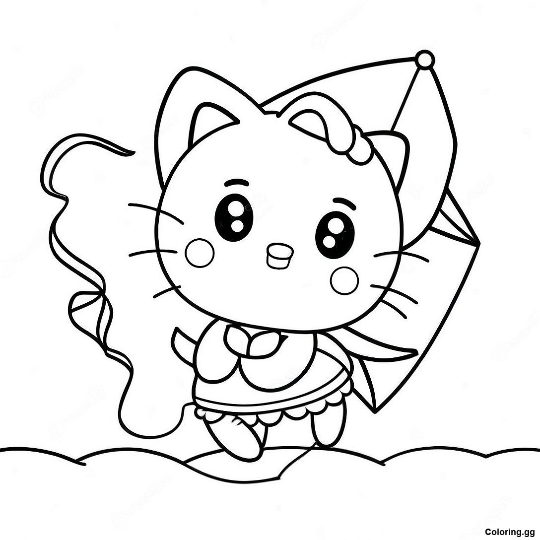 הורד PDF להדפסה של דף צביעה של הלו קיטי המשחקת עם עפיפון