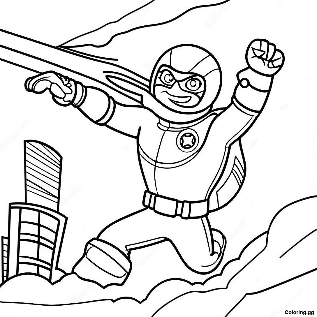 הורד PDF להדפסה של דף צביעה של קיד דנג'ר מציל את היום