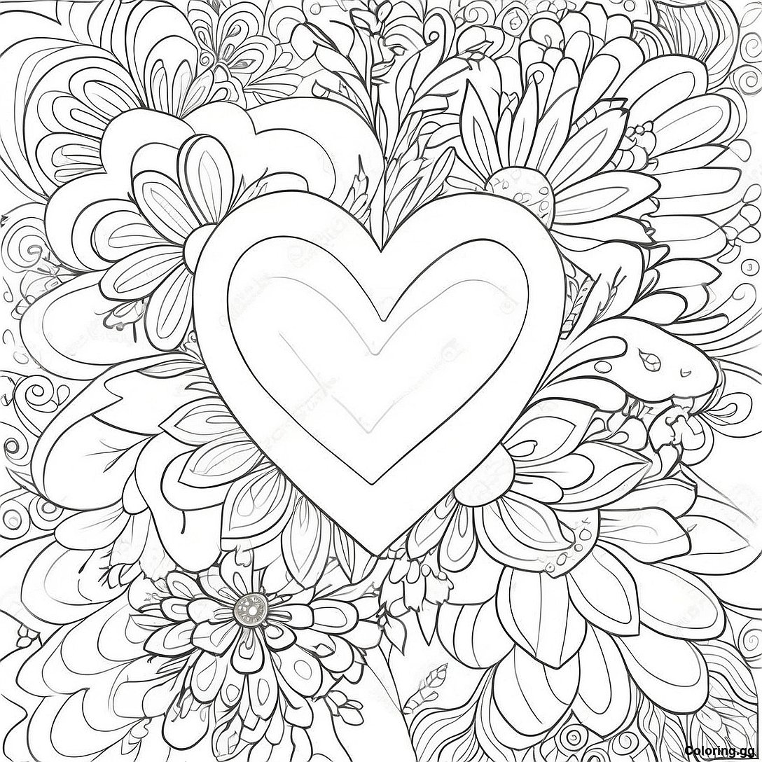 הורד PDF להדפסה של דף צביעה של לב צבעוני עם פרחים