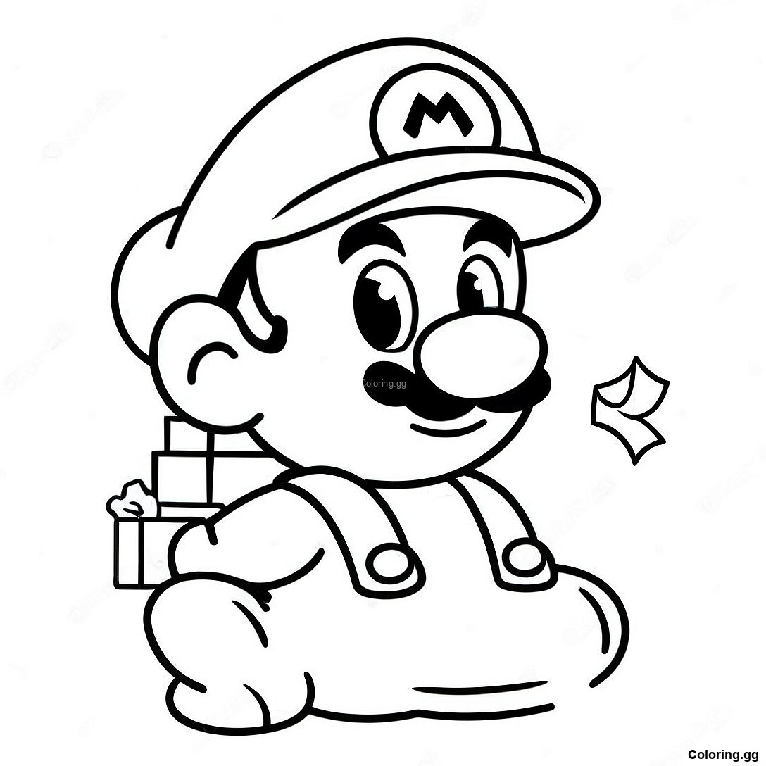 הורד PDF להדפסה של דף צביעה של מריו עם כובע סנטה