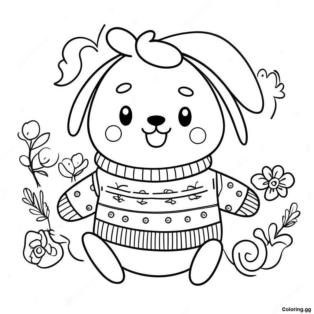 הורד PDF להדפסה של דף צביעה של פוצ'קו בסוודר נוח