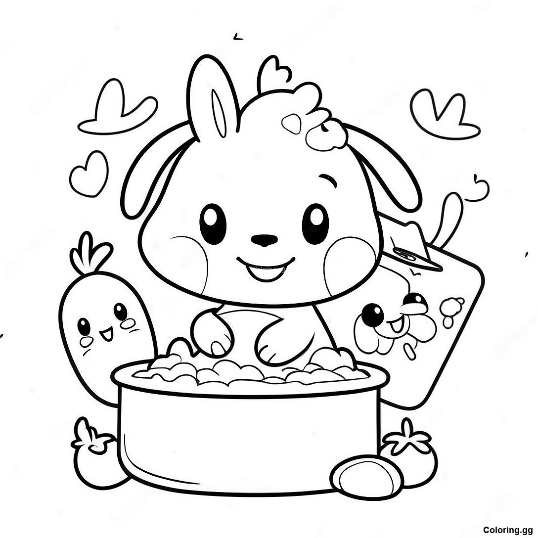 הורד PDF להדפסה של דף צביעה של פוצ'קו משחק עם חברים