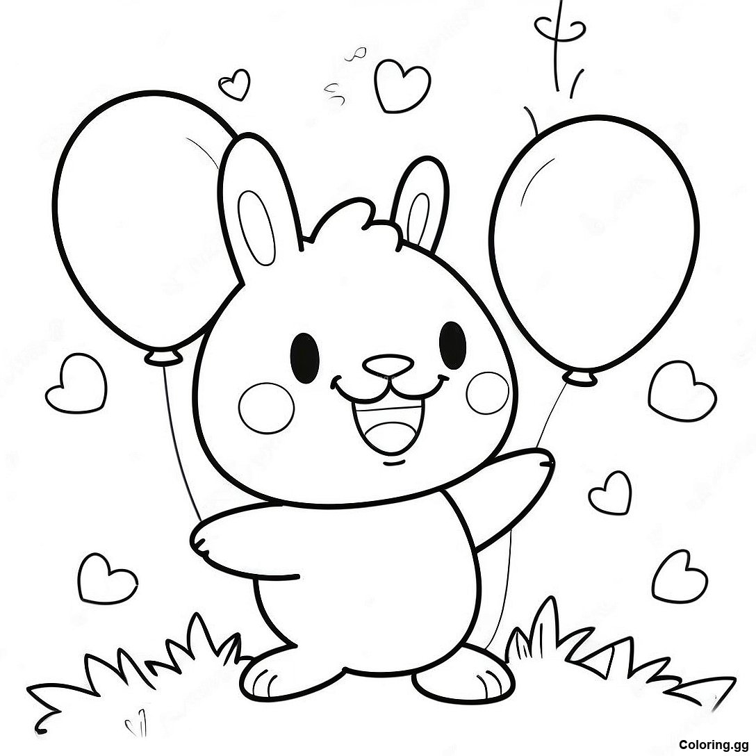 הורד PDF להדפסה של דף צביעה של פוצ'קו שמח עם בלונים