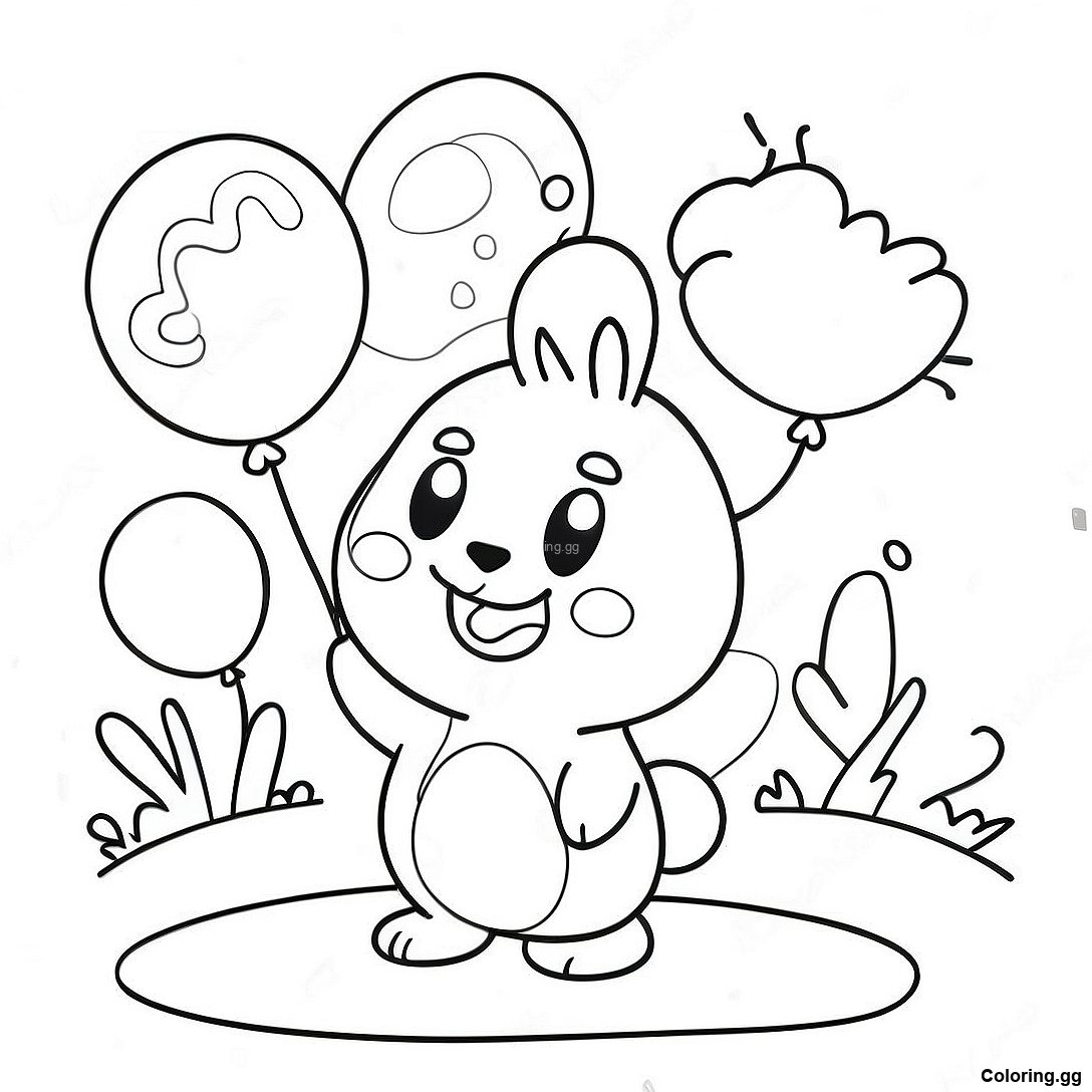 דף צביעה של פוצ'קו שמח עם בלונים