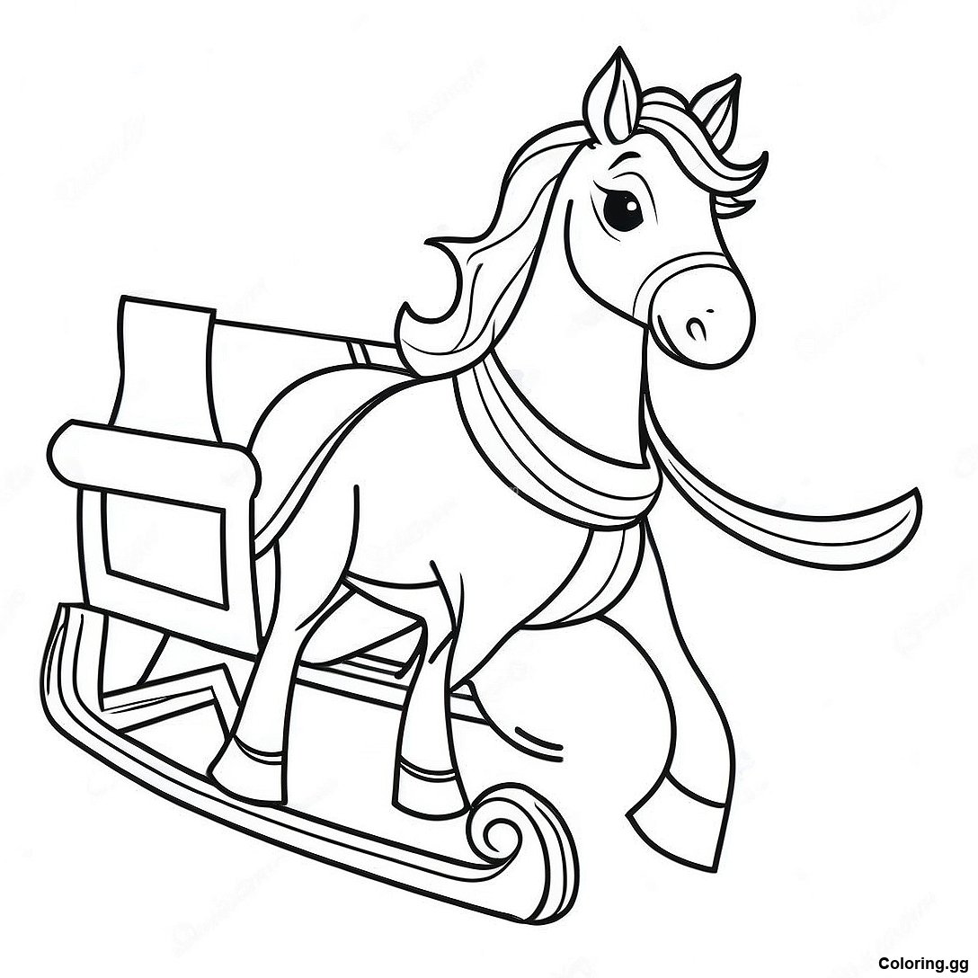 דף צביעה של סוס מושך מזחלת