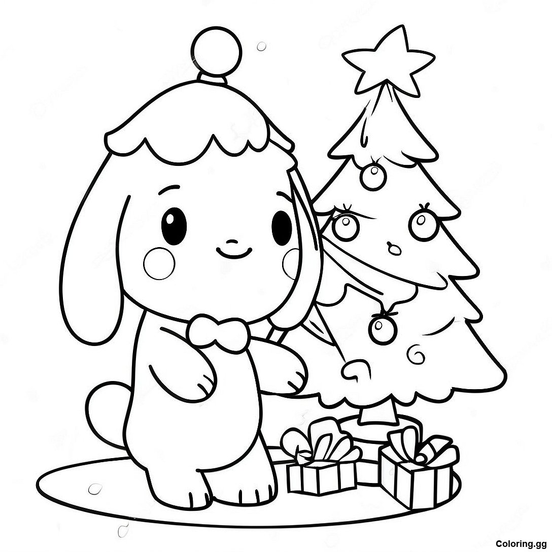 דף צביעה של סינאמורול מקשט עץ חג המולד