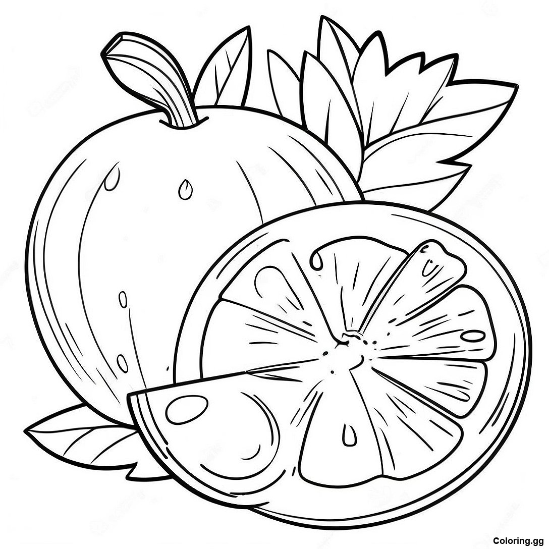 הורד PDF להדפסה של דף צביעה של תפוז עסיסי