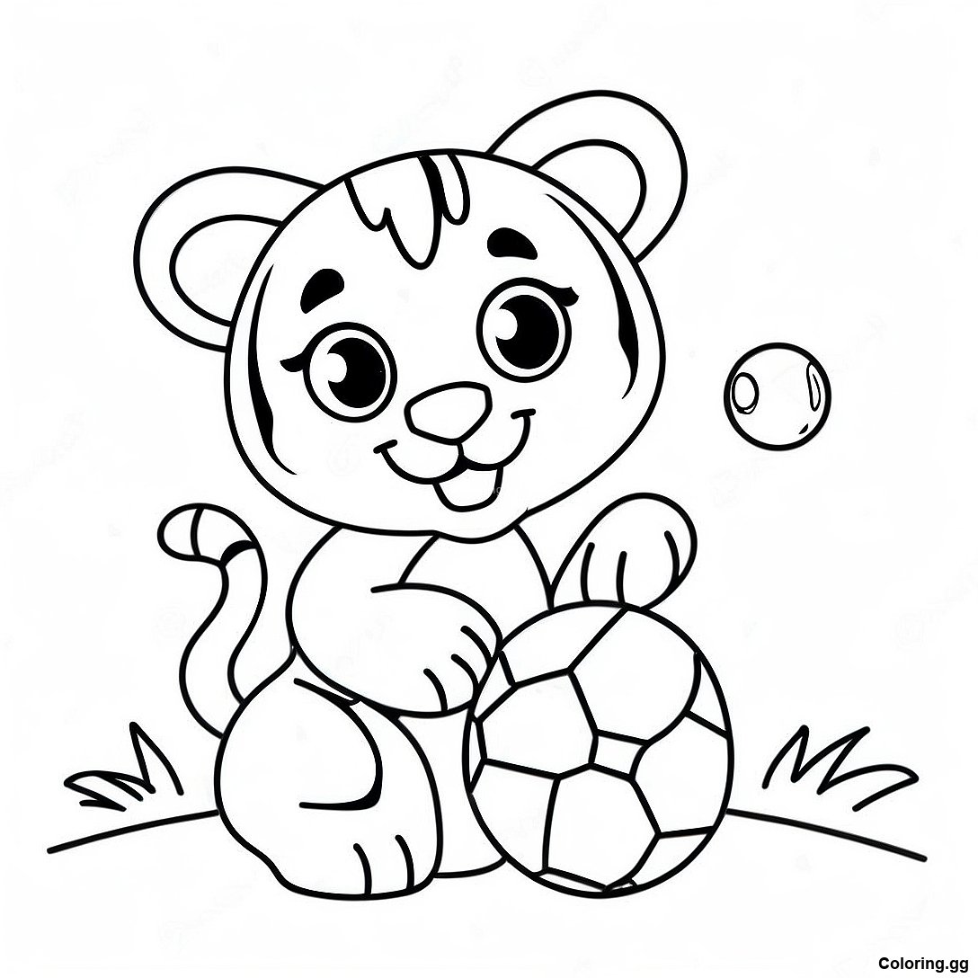 הורד PDF להדפסה של דף צביעה של טיגריס חמוד משחק עם כדור