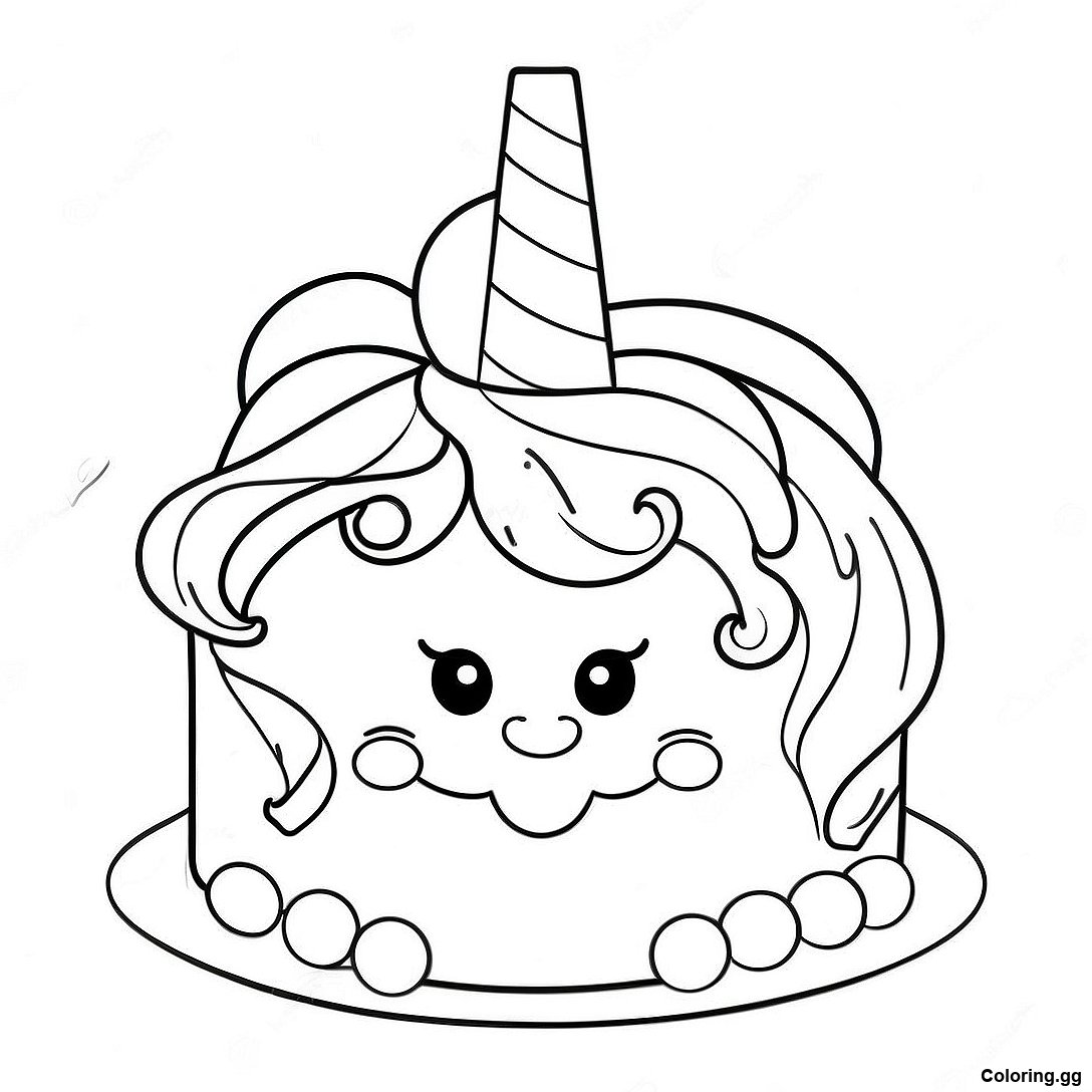הורד PDF להדפסה של דף צביעה של עוגת חד קרן