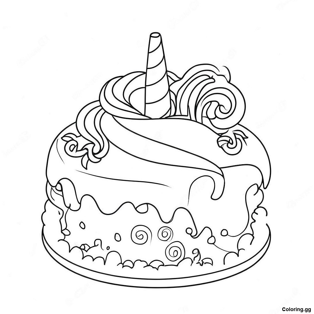 הורד PDF להדפסה של דף צביעה של עוגת חד קרן
