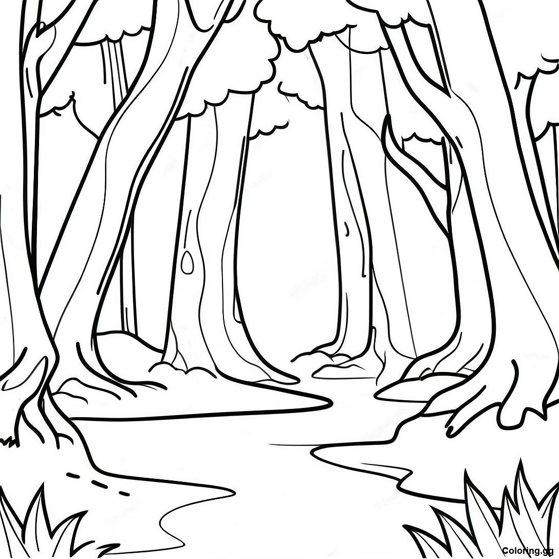 הורד PDF להדפסה של דף צביעה של יער רגוע