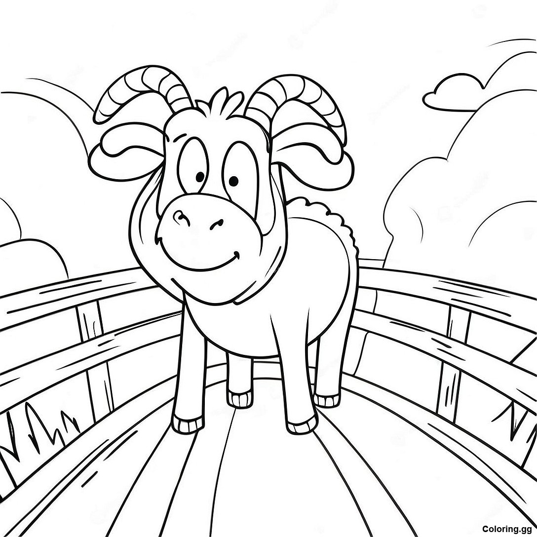דף צביעה של עיזים גְרוּף חסרי פחד חוצים את הגשר