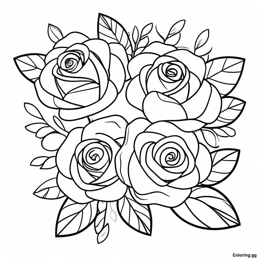הורד PDF להדפסה של דף צביעה של זר ורדים רומנטי